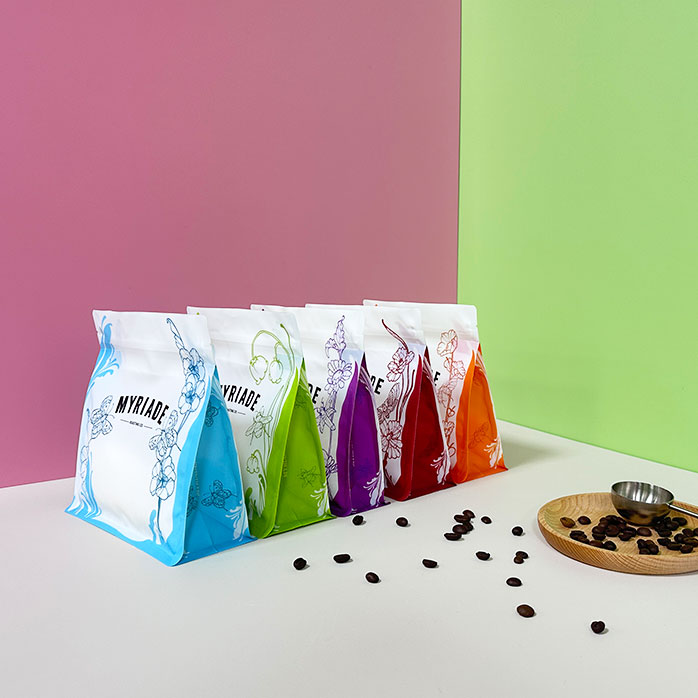 Manufactured using recyclable mono-material structures, these personalised coffee bags provide strong oxygen and moisture protection while supporting circular economy initiatives. Available in flat bottom, stand-up pouch, and side gusset formats, they can be fully personalised with branding, finishes, and recyclable degassing valves.